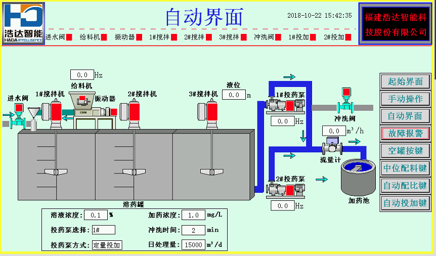 浩達PAM投加系統(tǒng)是用于絮凝劑PAM(化學名:聚丙烯酰胺)固體狀藥劑溶解配制與投加的自動化控制系統(tǒng)。